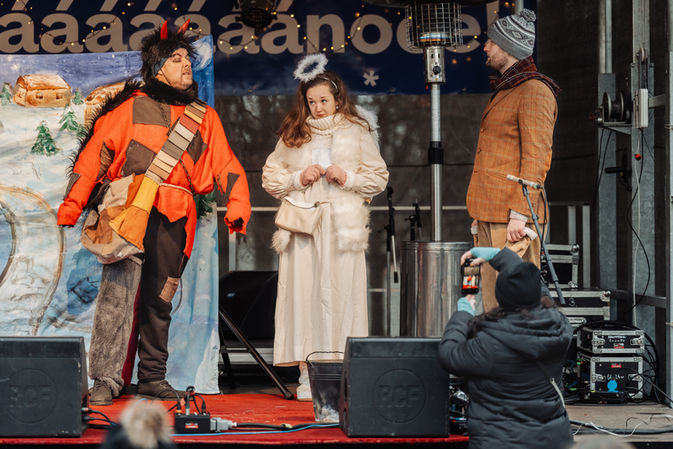 Dvě divadelní představení. Jedno loutkové představení divadla Pimprdlátko s názvem O vánoční hvězdičce a druhé divadelní představení divadla Šapitó s názvem Potkali se u Betléma. Společnost nám budou dělat andělé na chudách a děti jistě potěší i vánoční škola žonglování. Divadelním adventem vás provede moderátor Marek Fottr.