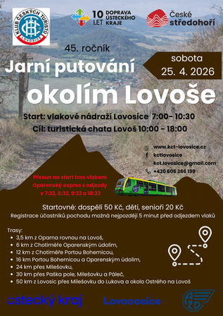 KČT Lovosice vás zve na tradiční Jarní putování okolím Lovoše - 45. ročník.